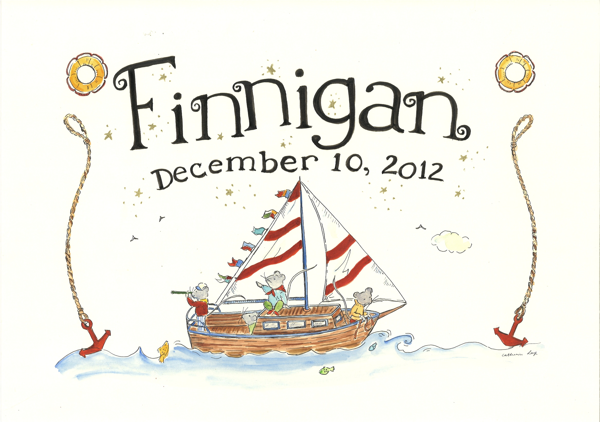 Catherine Lay creates original hand painted waterolors of your child’s name and birthdate